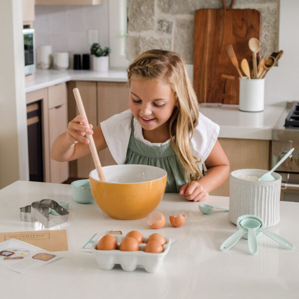 Level up your kitchen skills with the ultimate baking challenge kit for kids! Kids will bake fun, themed recipes using the instructions and tools in this 35 piece kit. High quality kitchen tools come with imaginative recipe challenges and pro tips to ensure your child finds baking success.