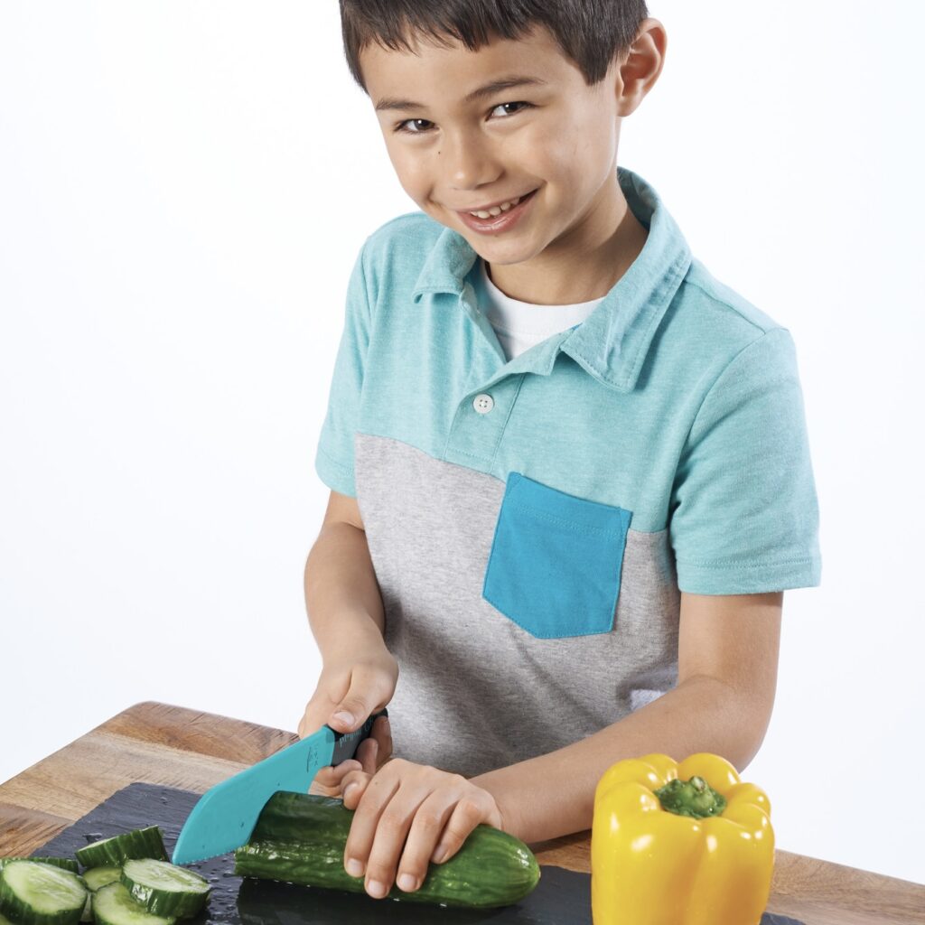 When kids use their own tools, healthy eating becomes exciting. Our Playful Chef Safety Knives let little chefs cut fruits and veggies all by themselves—turning kitchen prep into playtime. Suddenly, carrots and cucumbers aren’t just snacks…they’re creations to be proud of!